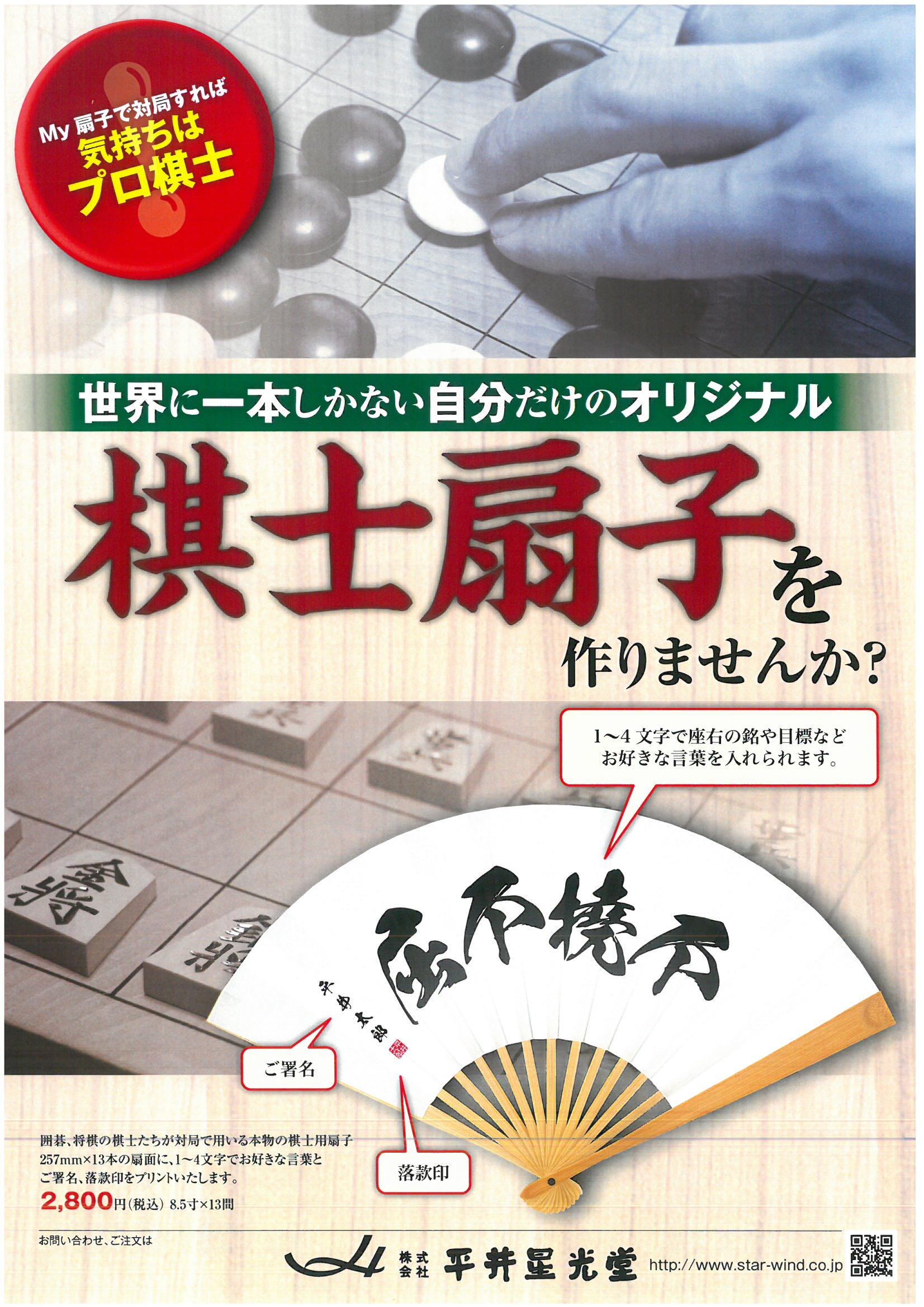 オリジナル棋士扇子をつくりませんか